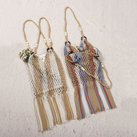 Mão-tecido algodão Tassel Casual Tote Bag moda estilo 1-1.9L capacidade das mulheres aberto encerramento praia exterior